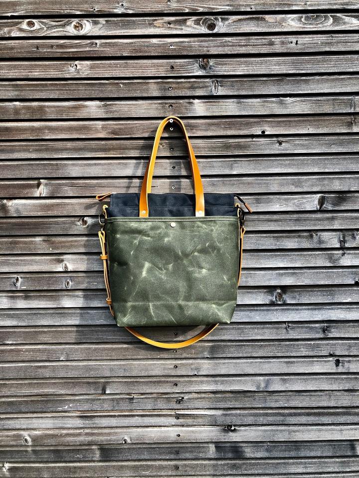 Large Stylish Durable Tote Bag Handmade Leather and Waxed Canvas Zipper Closure for School Office Travel Shopping-LCT-0053