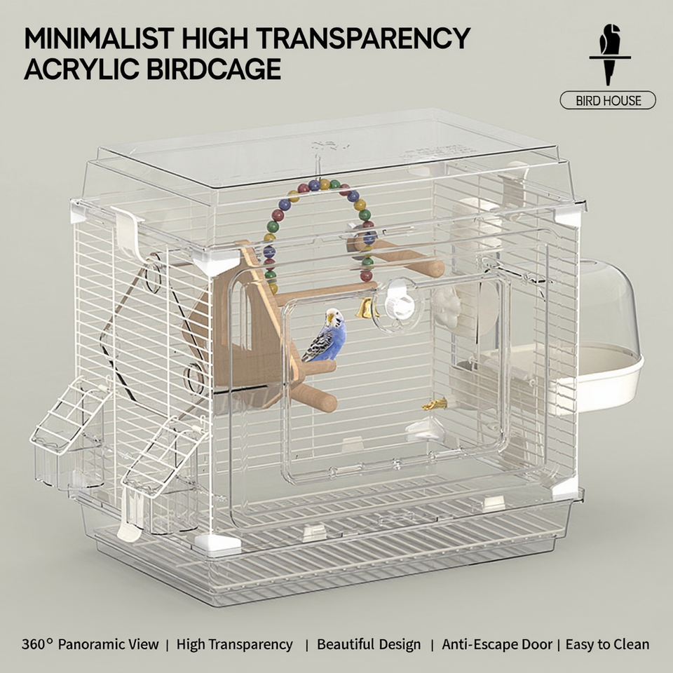 Large Transparent Bird Cage Acrylic Parrot Villa Breathable Wire Mesh Pet House for Cockatiel Parakeet Budgie Lovebird with Tray