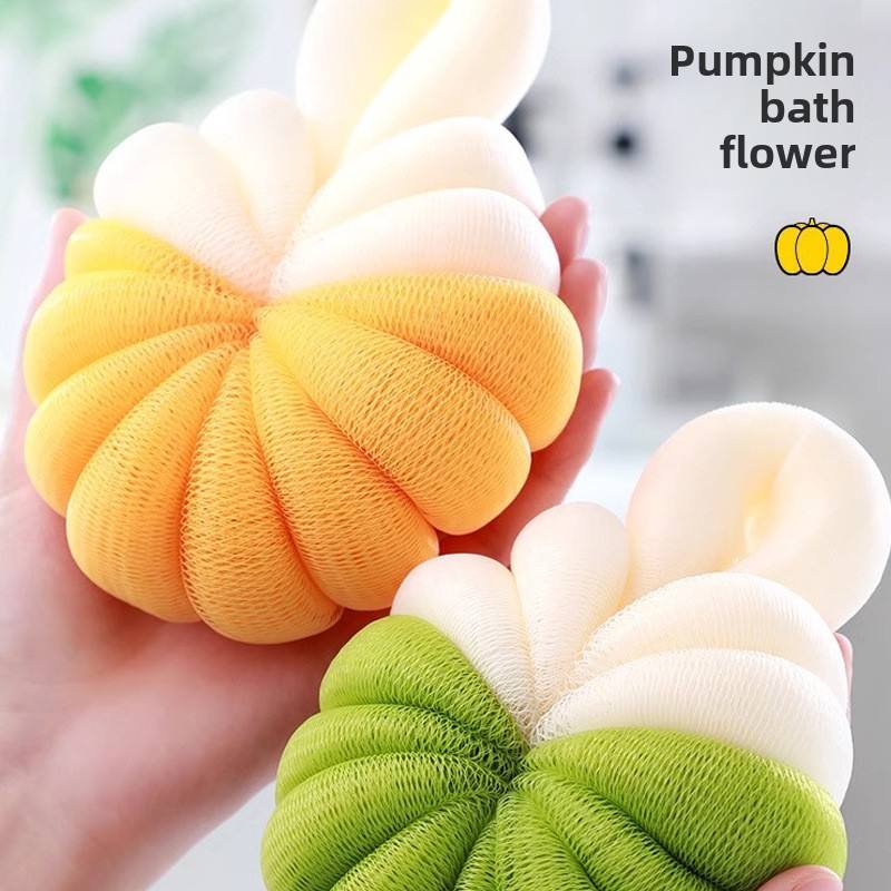Large Two-Tone Pumpkin Shaped Bath Ball Soft Bath Bubbling Mesh for Effective Bath Brushes Sponges & Scrubbers