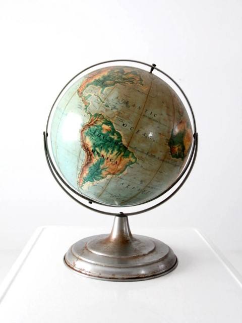 Large Vintage World Globe Nystrom Educational Geography Earth Model Desktop Decor Earth Nystrom Desktop Display Retro Style