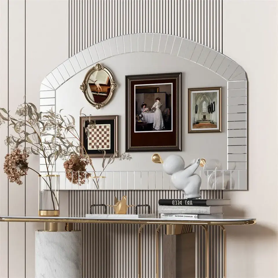 Large Wall Mirror 100 x 70cm Arched Venetian Mirror with Beveled Glass Frame Accent Mirror for Entry Living Room Bathroom Decor