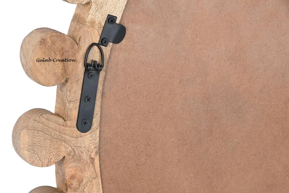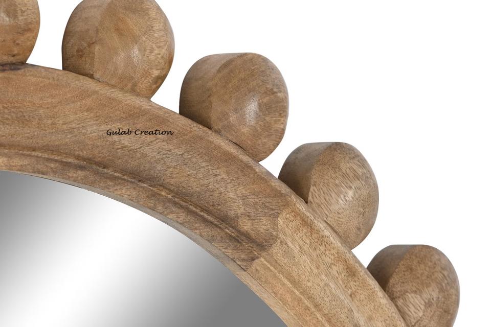 Large Wall Mirror Frame Handcrafted Pompom Mango Wood Modern Design for Boho Home Decor and Rustic Interior Styling