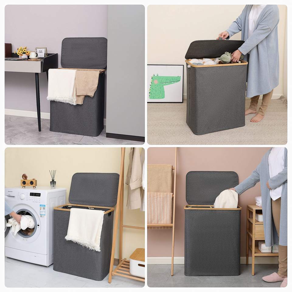 Large Waterproof Foldable Laundry Hamper with Bamboo Handles Collapsible Clothes Basket for Bedroom or Laundry Room