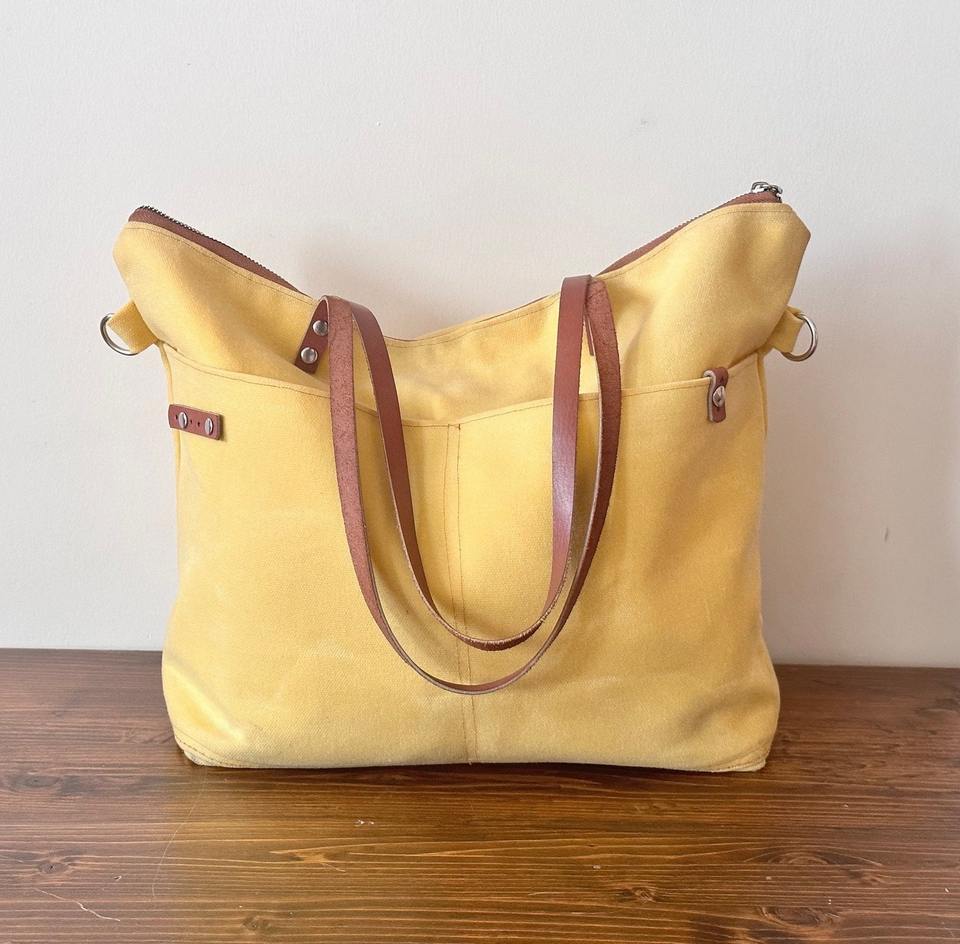 Large Waxed Canvas Tote Bag with Leather Handles Vintage Handmade Durable Shopping Work Travel Shoulder LCT-0023