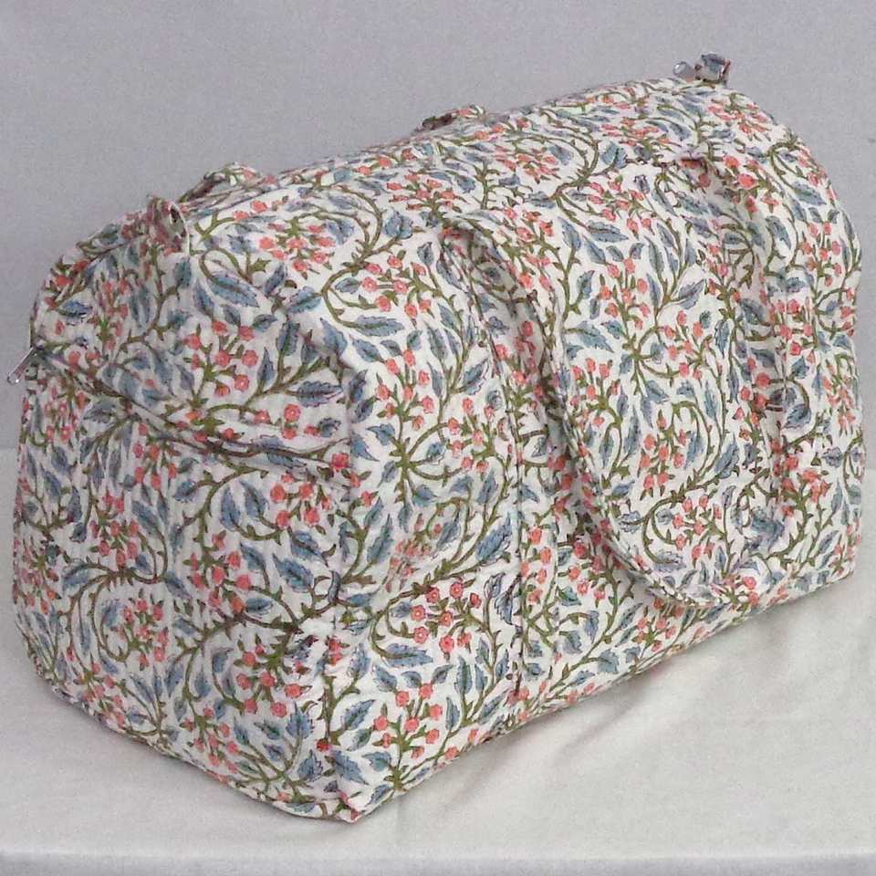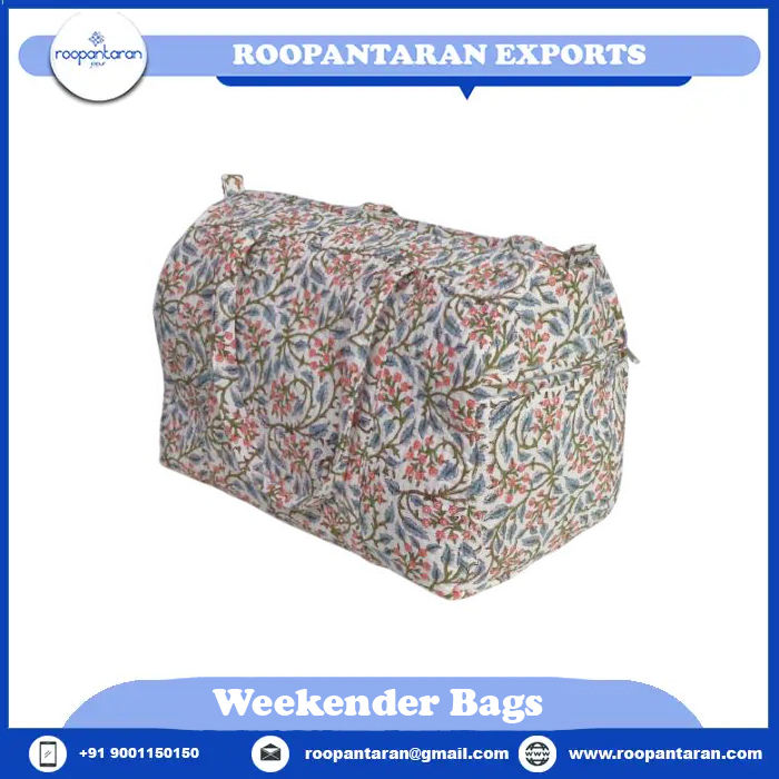 Large Stylish Eco-Friendly Weekender Duffle Bag Soft Cotton Hand Block Print Fabric Fashionable Striped Cosmetic Bags Cases