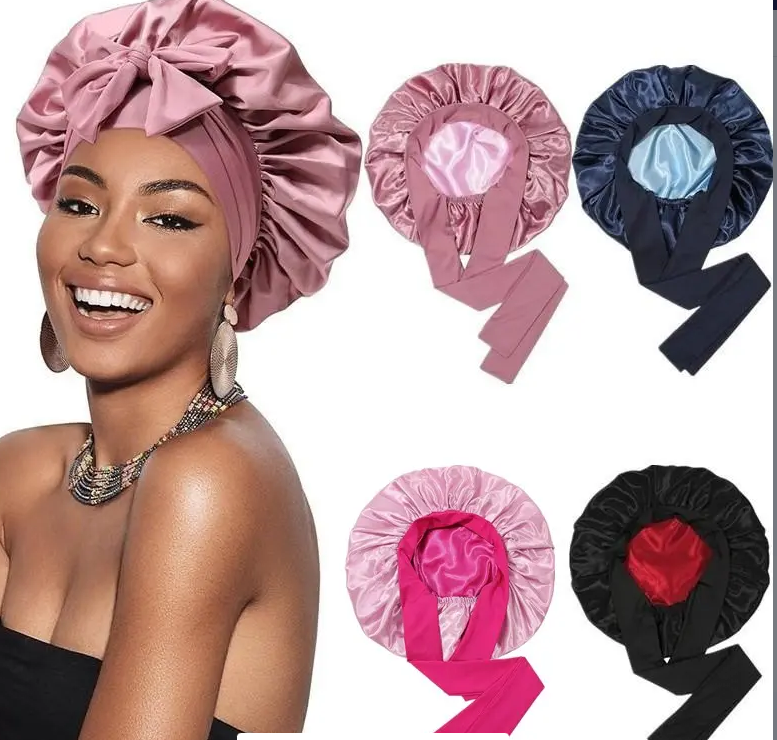 Large Wide Band Satin Sleep Cap Adjustable Bonnet for Hair Care Curly Hair Nightcap with Elastic Band