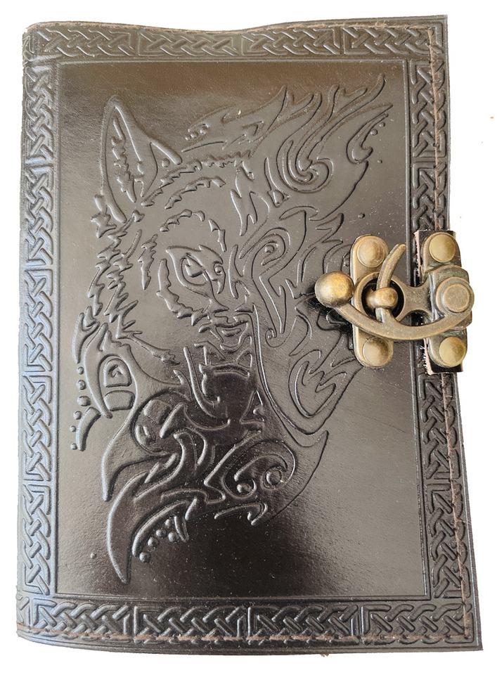 Large Wolf Vintage Leather Journal Grimoire Handmade Blank Spell Book of Shadows Gifts for Him Her Travel Planner Sketchbook