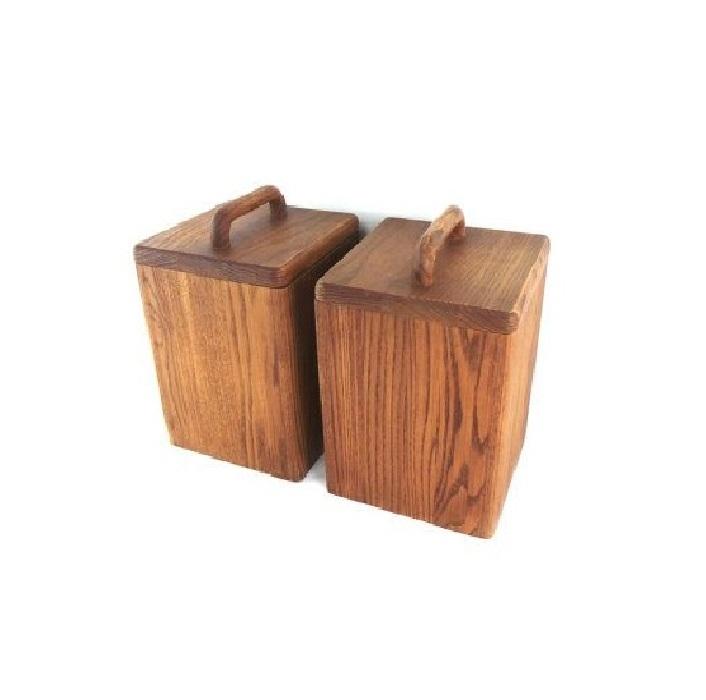 Large Wooden Food Container for Flour Sugar Coffee Tea Kitchenware Canister with Cover for Condiments Storage