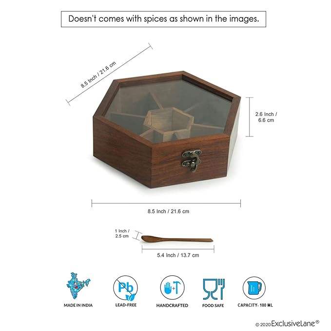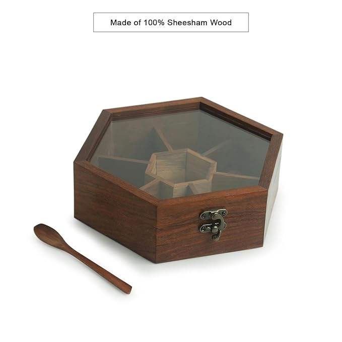 Large Wooden Masala Box for Keeping Spices Fresh and Organized Wooden Kitchen Spice Storage Box At AALIYAN IMPEX