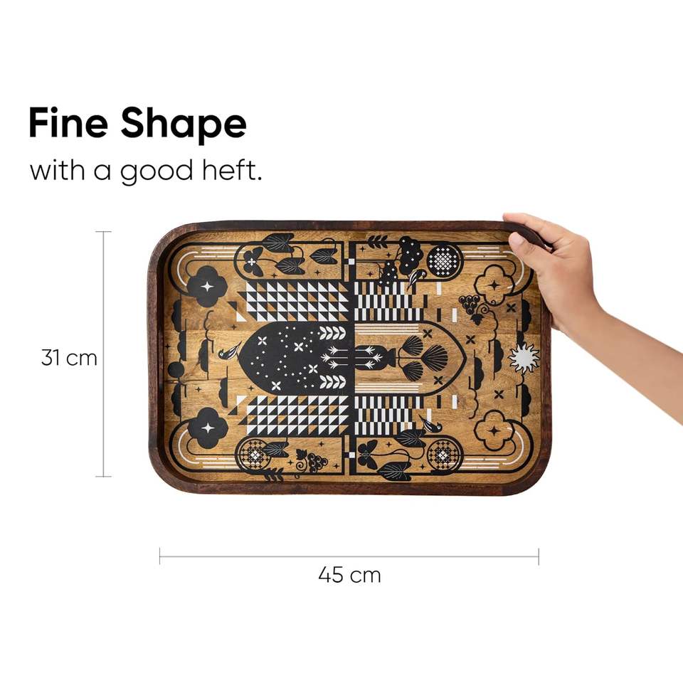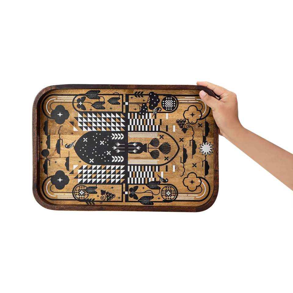 Large Wooden Rectangular Serving Tray For Serving Folk Floral for Home and Kitchen and Dinning Purpose Usage Available for Sell