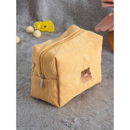 Large Yellow Embroidered Point Corduroy Pouch for Storage Elegant Home Organization Solution