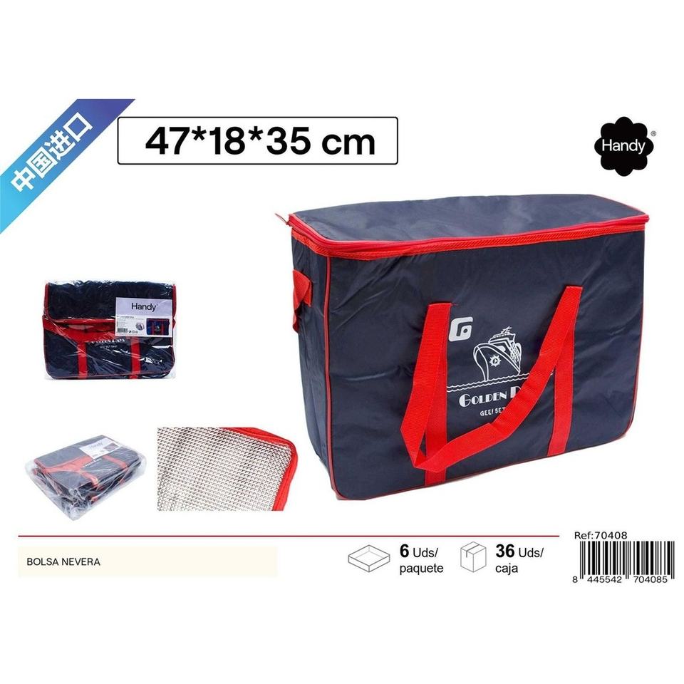 Large blue cooler bag 47x18x35cm for picnic and camping