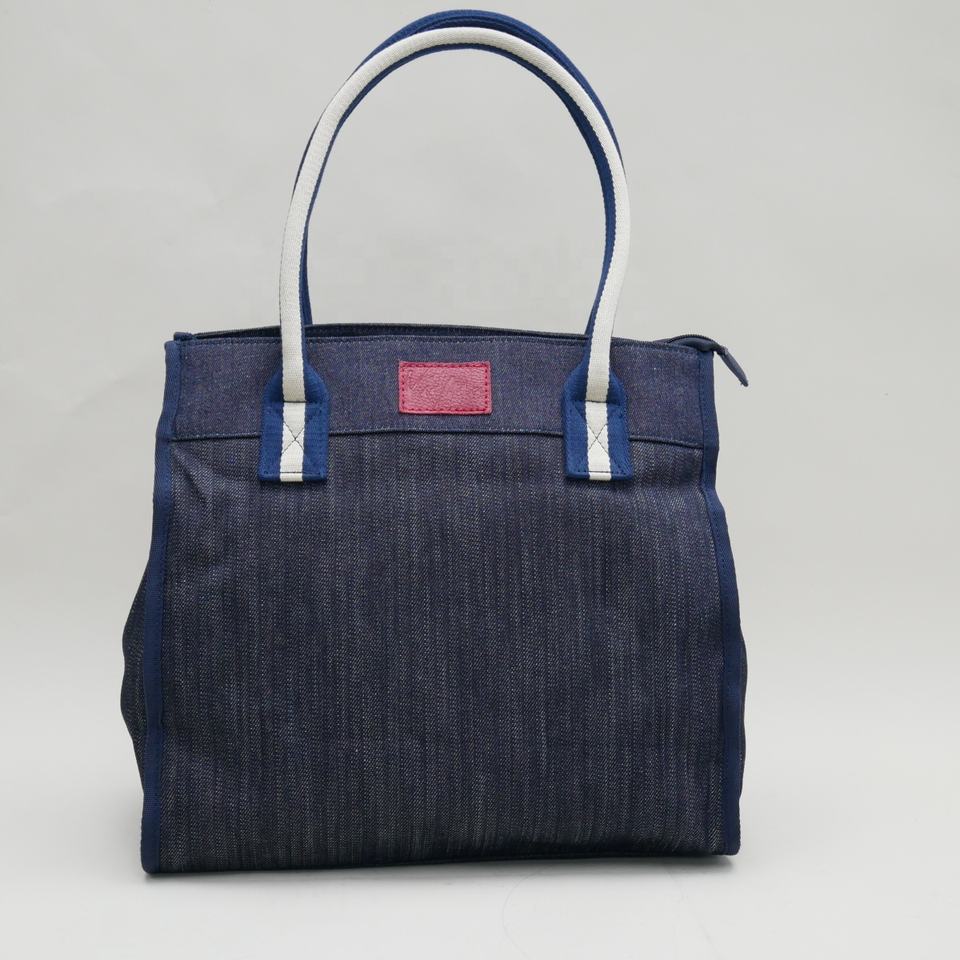 Large-capacity Portable Trendy Vintage Denim Medium Size Bamboo Cross Pattern Type NAVY Long Webbing Strap Men Handbags