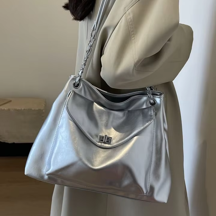 Large capacity women's high-end PU shoulder bag suitable for all seasons, zipper crossbody bag