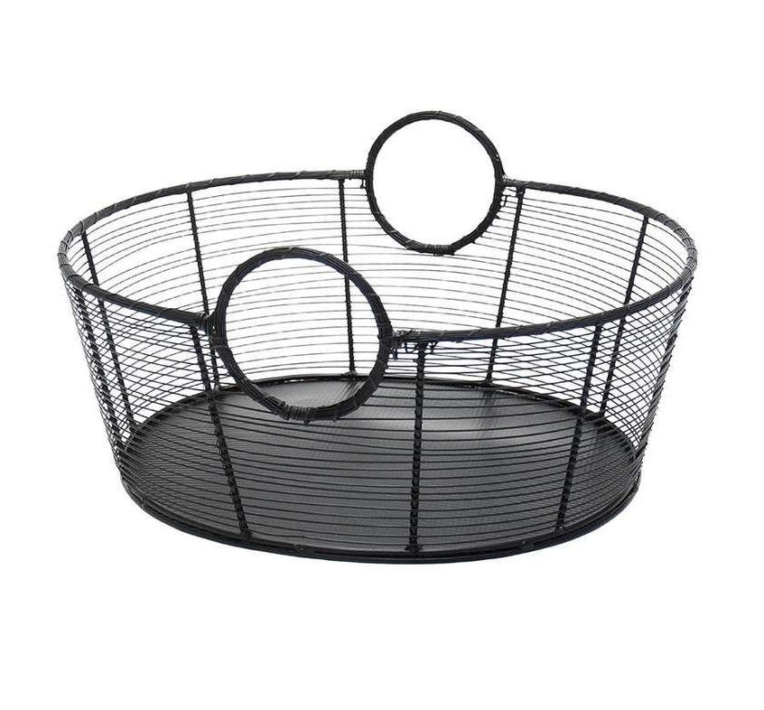 Large elegant metal fruit basket with handcrafted wire loops and premium design best for table top fruit arrangement