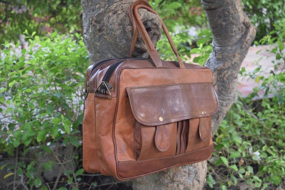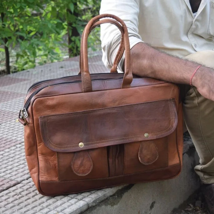 Large Vintage Style Genuine Leather Briefcase Handbag for Men Candy Pattern Office Laptop Bag Fashionable Travel Bag