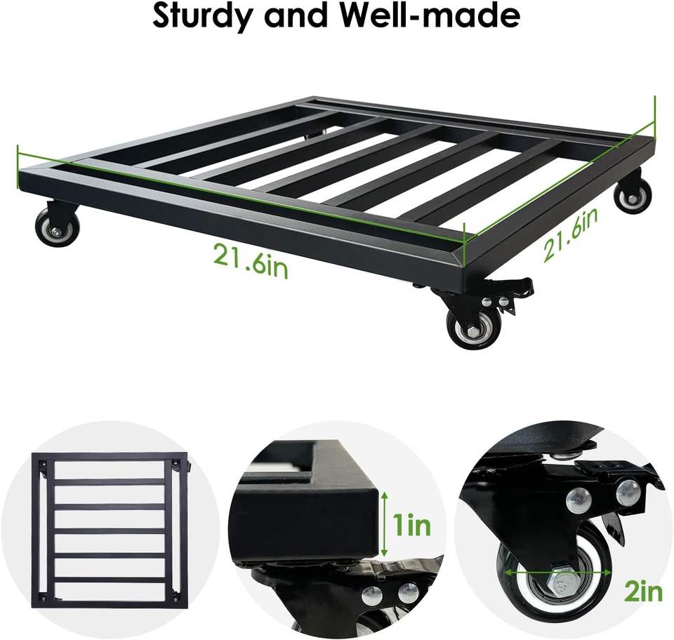 Large metal handling cart 22-inch wheeled plant cart industrial caster square rolling plant stand, rust resistant 600Lbs