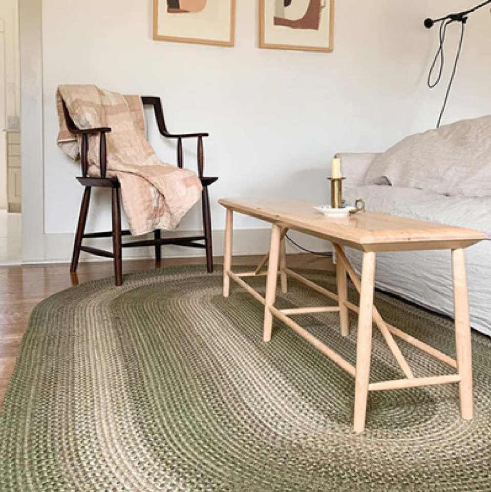 Large oval hand braided natural fiber rug, rustic farmhouse style gradient brown striped, durable indoor floor mat at wholesale