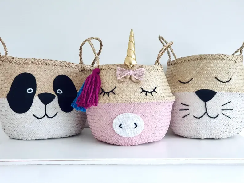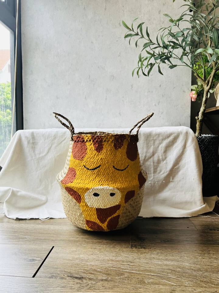 Large Panda Seagrass Belly Storage Basket Handmade Toy Organizer by Bao Minh Manufacturer Lovely for Kids' Room