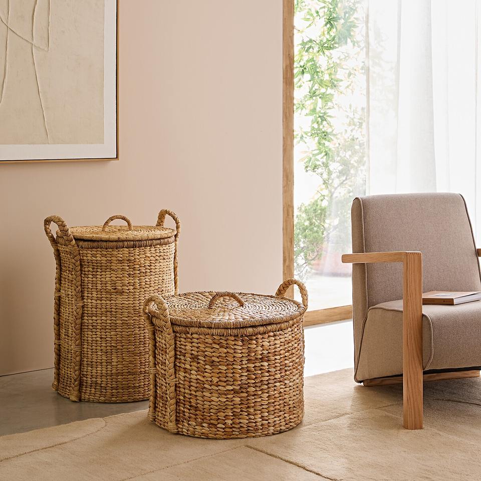 Size: D21,7 x H18,3 inch:Large round water hyacinth basket with a sturdy handle