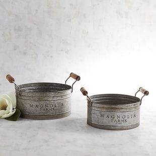 Large size round galvanized steel bowl for farmhouse decor fruit display party table accent with handles and premium finished