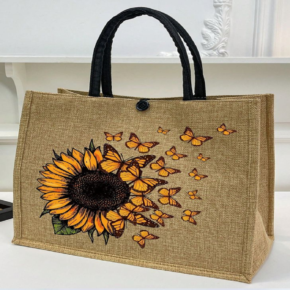 Large two-tone jute tote bag with a natural and white color-block design, available at wholesale prices.