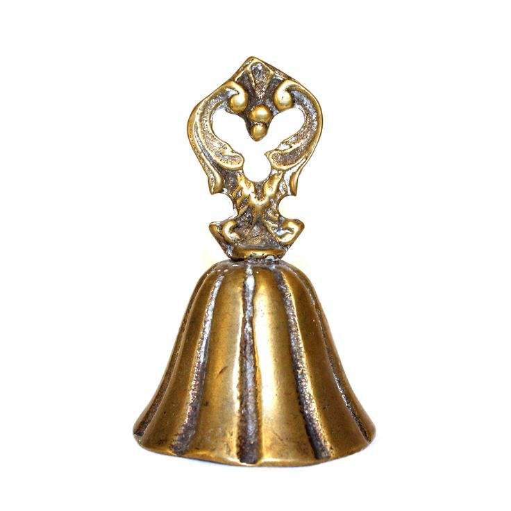 Large vintage brass hand bell with comfortable sun design handle for churches schools and theatrical props