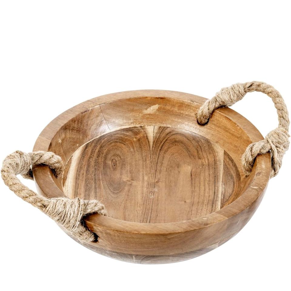 Large Wooden Serving Bowl with Rope Handle multi dishes serving Table Centerpiece Food Presentation Great for Holiday Decor Item