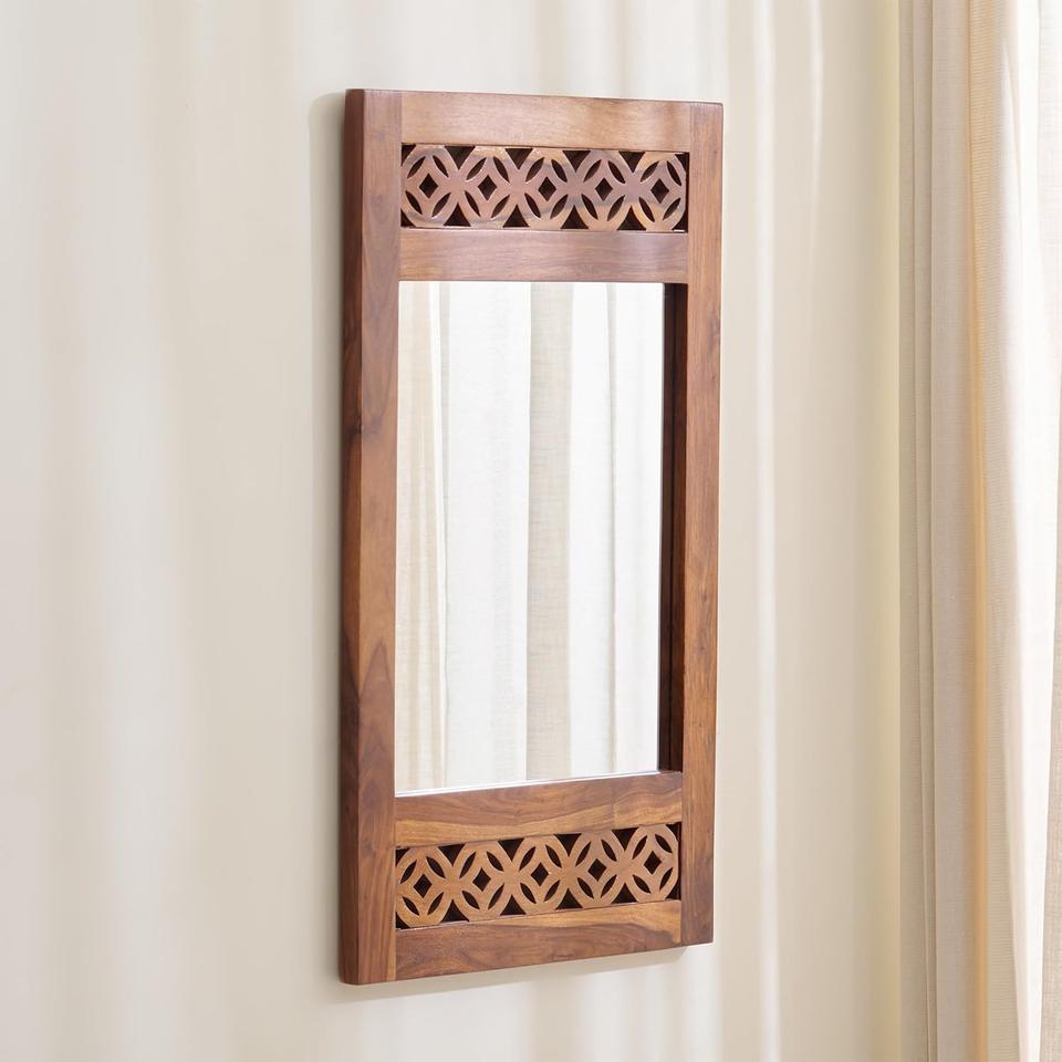 Large wooden wall mirror frame for bedroom wall hanging or entry area mirror with vintage natural finished