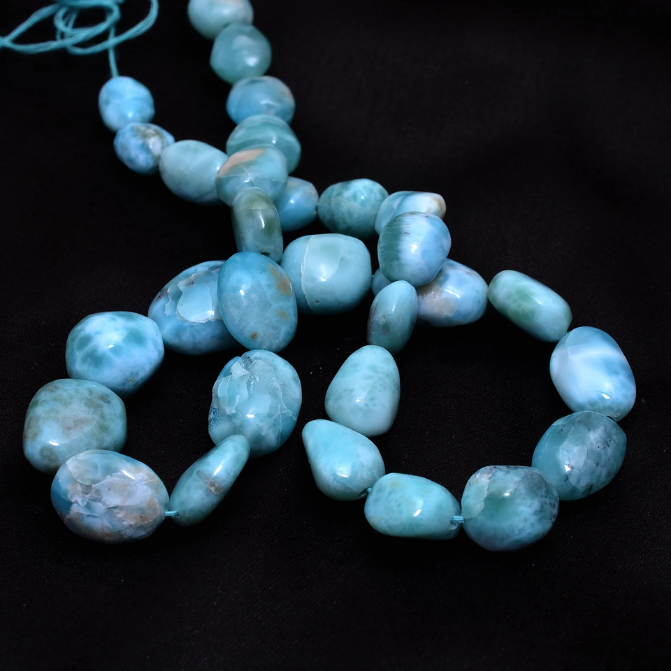 Larimar 10mm-14mm Gemstone Smooth Oval Tumbled Beads Natural Larimar Nugget Semiprecious Gemstone Loose Beads For Jewelry Making