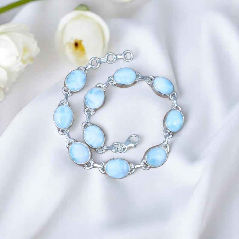 Larimar Bracelet 925 Sterling Silver Ten Stone Oval Gemstone Handmade Jewelry Natural Stone Silver Bracelet Gift