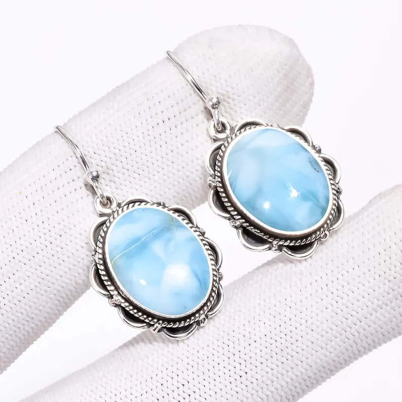 Larimar Earrings Wholesale Fine Jewelry 925 Sterling Silver Custom Made Jewelry Handmade Silver Earring Drop Dangle Gift for Her