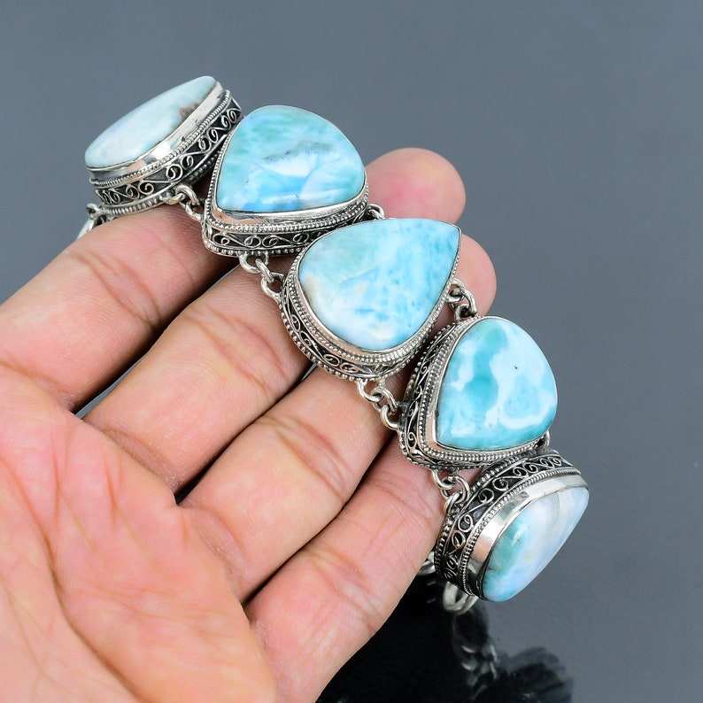 Larimar Gemstone Handmade 925 Sterling Silver Adjustable Bracelet Natural Jewelry Gift For Women