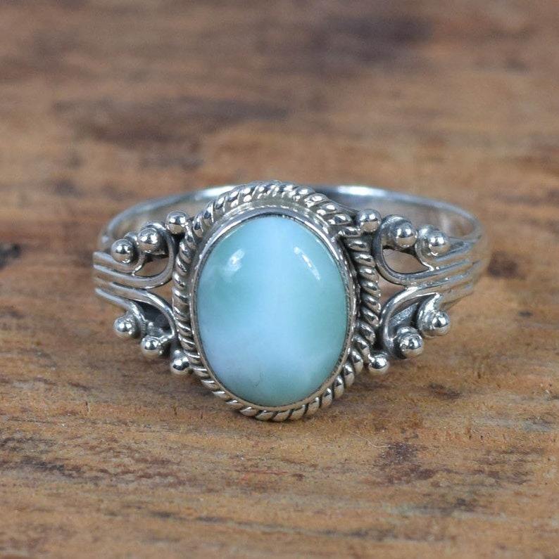 Larimar Gemstone Promise Ring 925 Sterling Silver Jewelry Sterling Silver Handmade Ring Boho Style Solid 925 Stamp Ring Jewelry