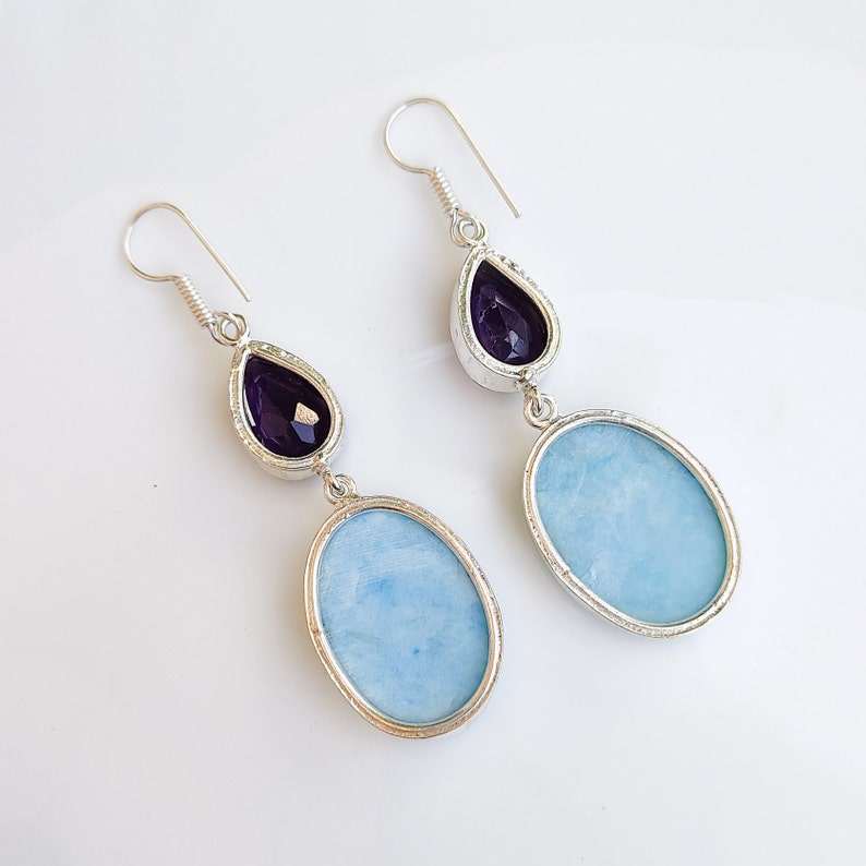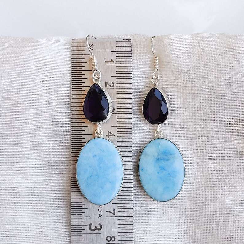 Larimar Multi Stone Dangle Earrings Silver Plated Ear Wire Crystal Earrings Handmade Boho Jewelry Gift for Mom Gift for Her