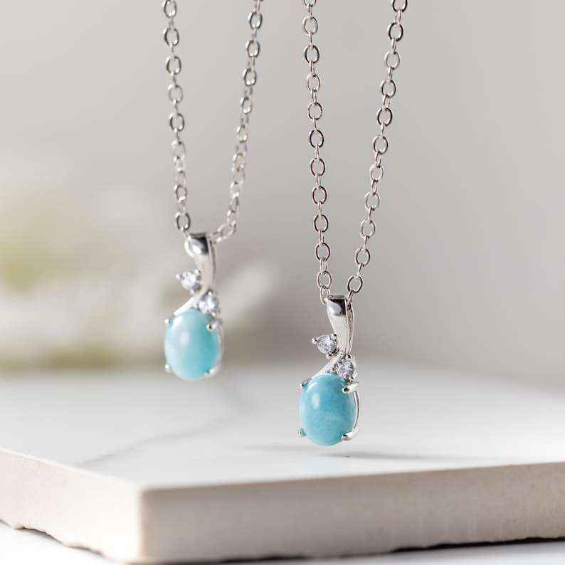 Larimar Pendant Necklace Minimalist Gemstone Necklace Blue Larimar Jewelry Sterling Silver Necklace Christmas Gift For Mother