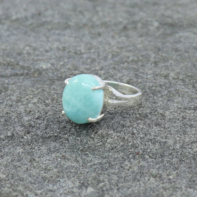 Larimar Ring Oval Cut 925 Sterling Silver Ring Fancy Design Women Girls Wedding Engagement Anniversary Bands Jewelry Wholesaler