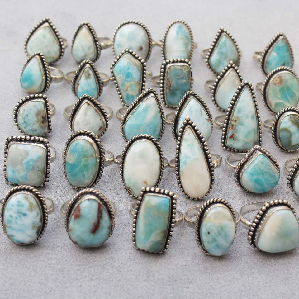 Larimar Rings Natural Stone Healing Crystal Rings Jewelry Women For Women Wholesale Jewelry Assorted Us Size 5-11