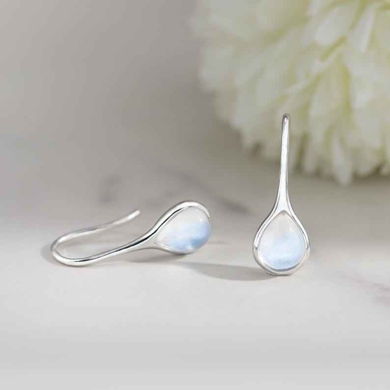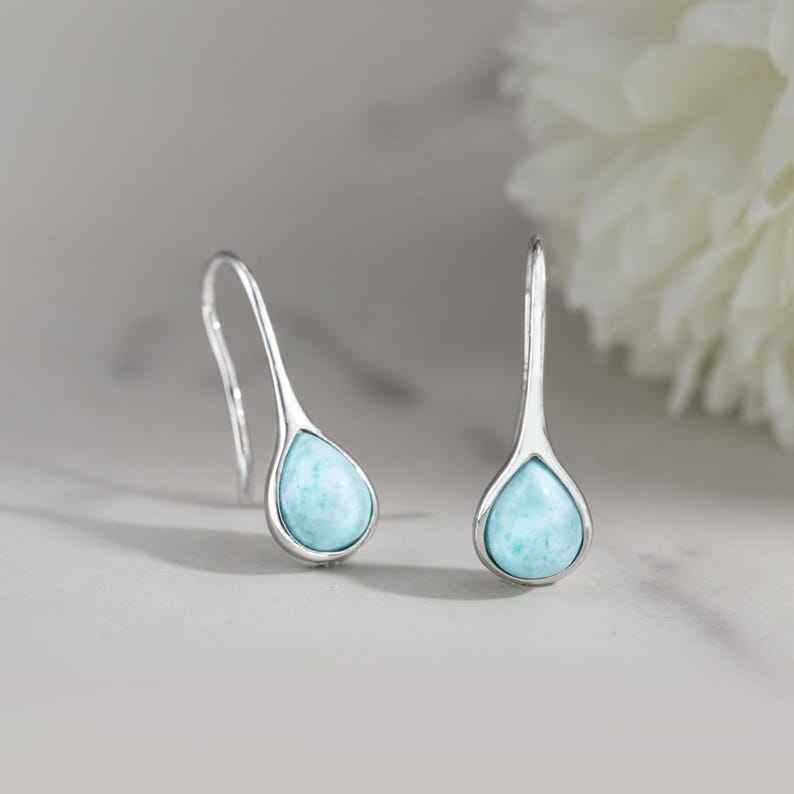 Larimar Teardrop Earrings Sterling Silver Moonstone Dangle Gemstone Jewelry Elegant Boho Style Fashion Accessories