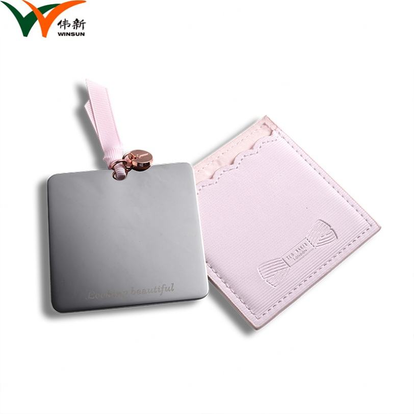 Product name:Cute Pink Ribbon Stainless Steel PU Pouch Compact Mirror With Logo