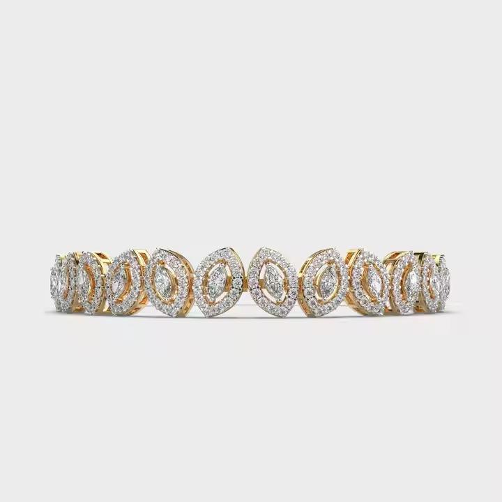 Latest 18K Yellow Gold Tennis Classic Bracelet Simple Unique Design Real Diamond Studded Bangle Moissanite Bracelets & Bangles