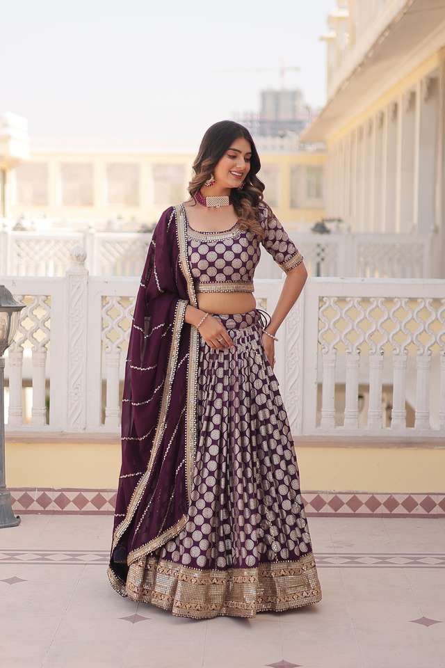 Product Name:Latest Pure Dyable Viscose Jacquard Lehenga Choli & Dupatta