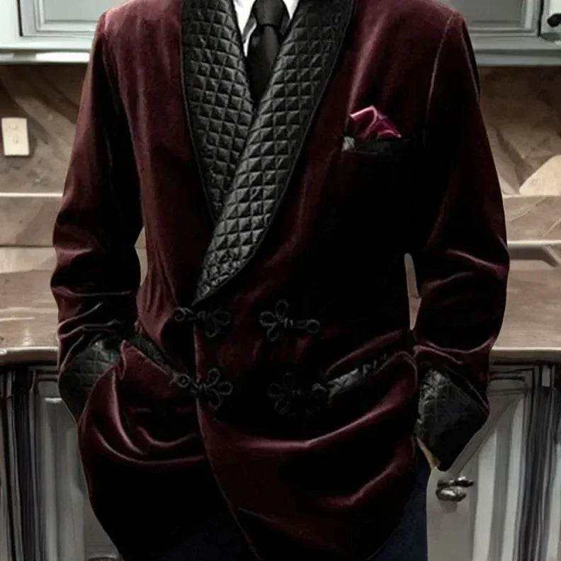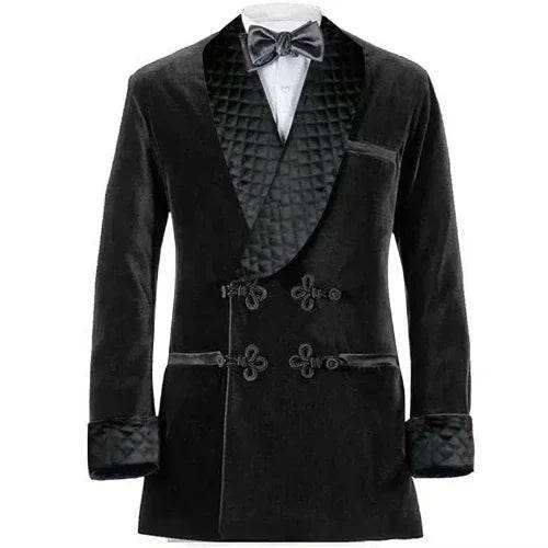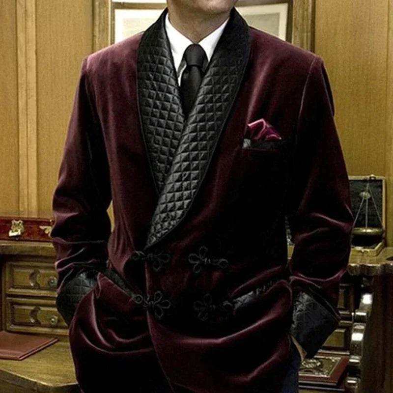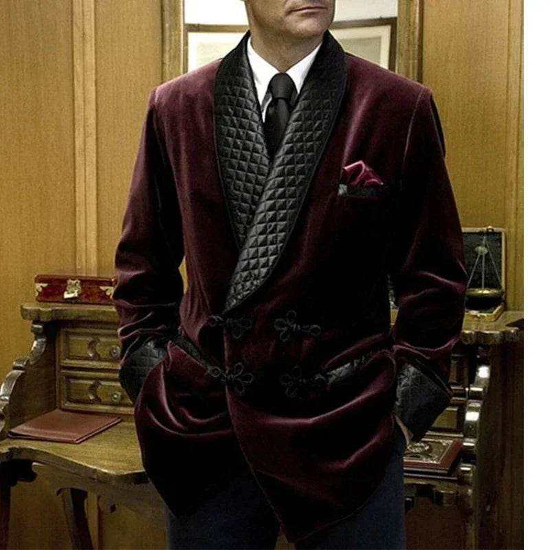 Latest 2024 Designs Men's Retro Velvet Smoking Jacket Shawl Lapel Loose Fit Coat for Prom Dinner Party Male Fashion