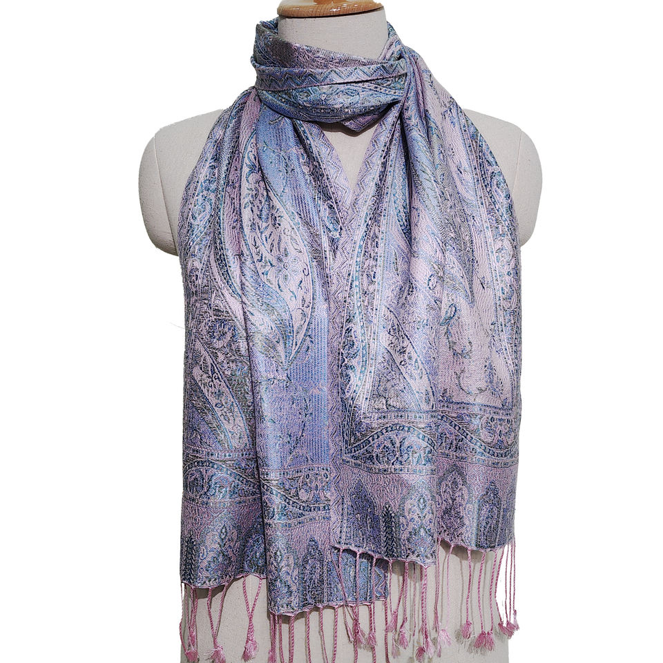 2024 Latest Fashion Stylish Pure Silk Scarf Muffler for Girls Jacquard Weave Woven Patterns Medium Length for Spring