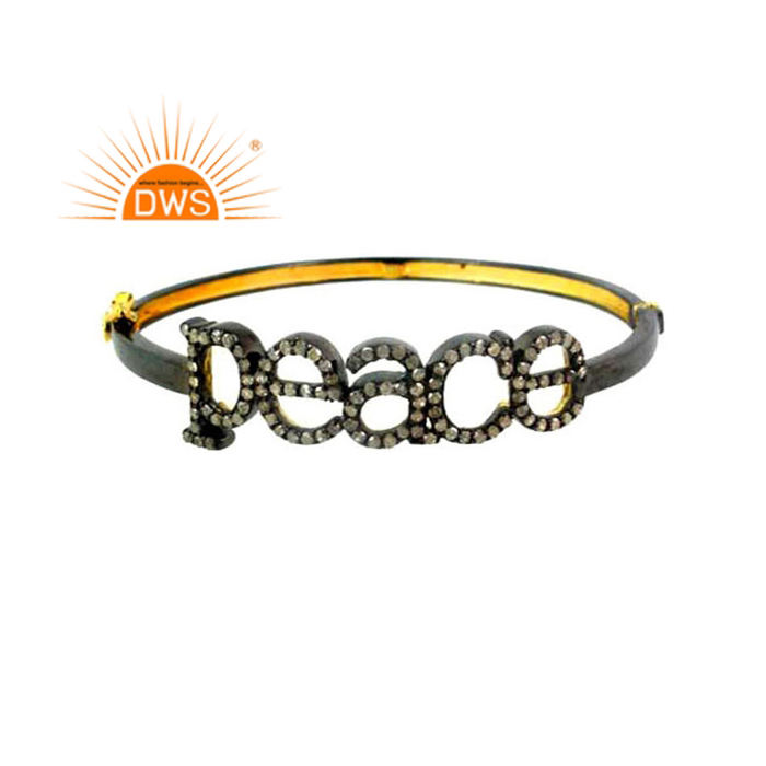 Latest 2026 Sterling Silver Gold Plated Natural Diamond Stone Peace shape Design Bangle For Women Jewelry Manufacturer