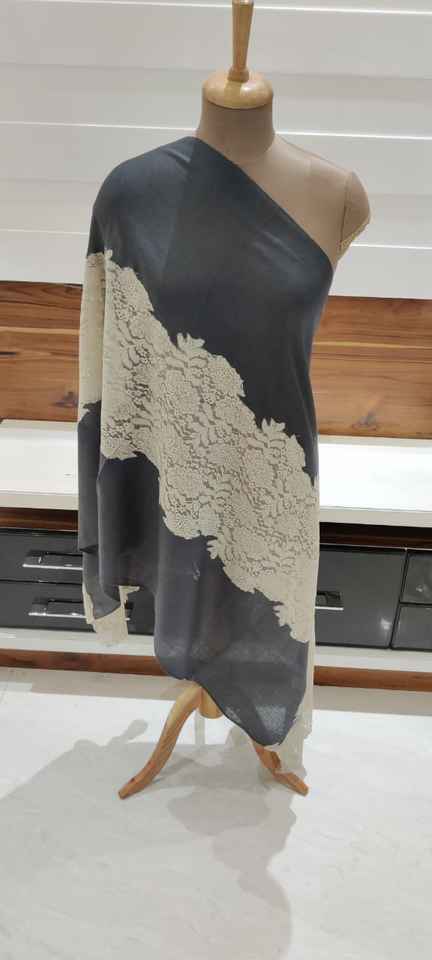 Latest Adult Daily Wear Cashmere Shawl Medium Length with Net Lace Decoration for Spring Season Fleece Material