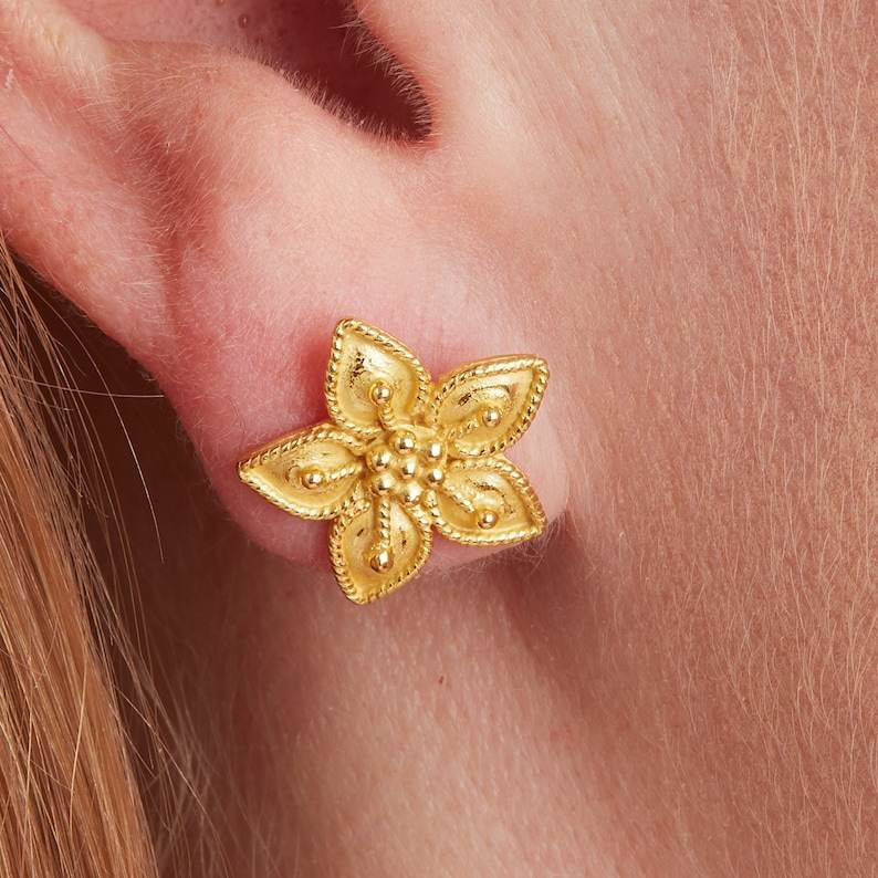 Latest Arrival 2025 Fashionable 925 Sterling Silver 18K Gold Plated Floral Design Stud Earrings Fine Jewelry for Wedding Party