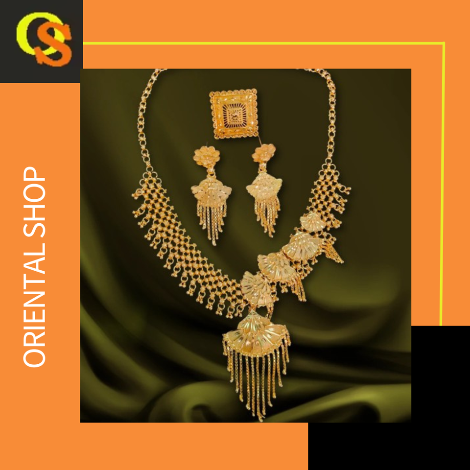 Latest Arrival 22K Gold Plated Necklace Earrings Ring Set with Traditional Designed Bridal Jewelry Set for Sale