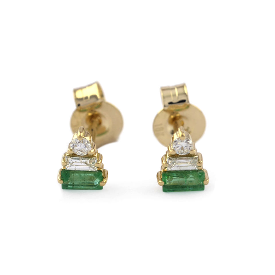 Latest Arrival Natural Emerald Baguette Diamond Stud Earrings Yellow Gold 18K Solid Gold Anniversary Party Gift