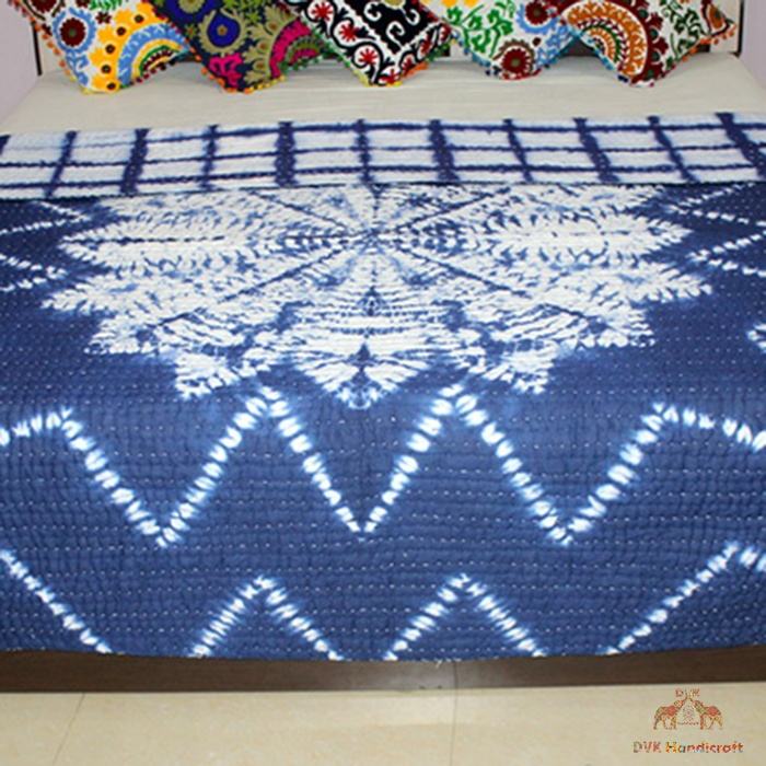 Latest Arrival of Tie & Die Reversible Kantha Quilt Cotton Shibori Print Vintage Indian Hand Stitched Cotton Blanket Bedspread